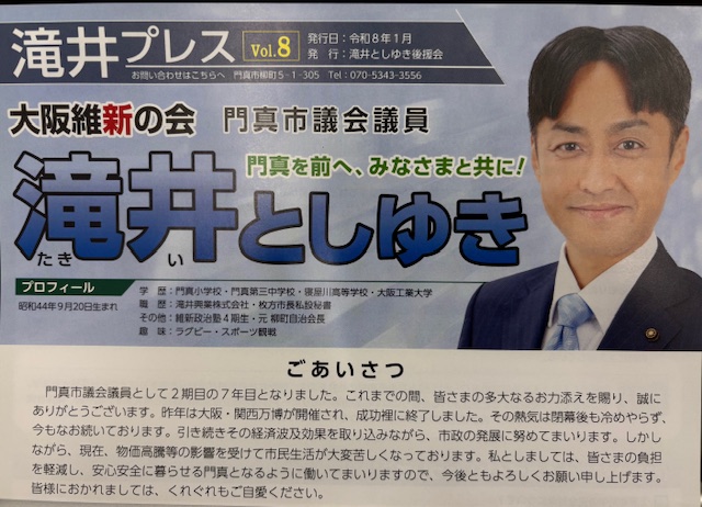2023年4月23日に実施された門真市議会議員選挙におきまして、多くの皆さまの負託を得て2期目の当選させていただきました(2,570票で全体2位)。1期目の経験を活かして、市民の皆さまの安心・安全のために引き続き尽力してまいります。 また本市においては、古川橋駅や門真市駅、大和田駅周辺の整備や大阪モノレールの延伸、門真市役所の建て替えなどまちづくりに関する事業が数多く予定されていることから、人が集う魅力あるまちづくりを目指してまいります。