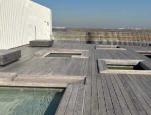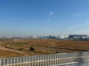誰でも入れる無料の足湯もあり、そこからは羽田空港が望めます