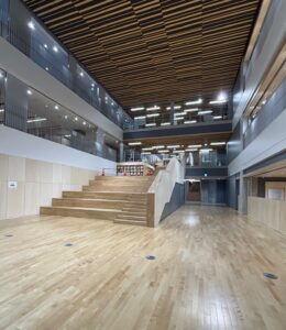 旧脇田小学校・旧砂子小学校・旧門真四中が統合して新たに門真市初の義務教育学校(小中一貫校)が4月に開校します。それに先駆け内覧会が本日開催されました。義務教育の9年間を1~4年、5~7年、8・9年の3つのステージに分けて連続的で系統的な教育を行い子どもたちを育んでいきます。校舎内の中央にはメディアコモンズと言われる図書室やグループワーク、自習、読書ができる空間があり、その周りを普通教室や特別教室、職員室等が囲むような配置となっております。体育館も広々としておりました。この新校舎で児童・生徒が楽しい学校生活を送っていただきたいと思います